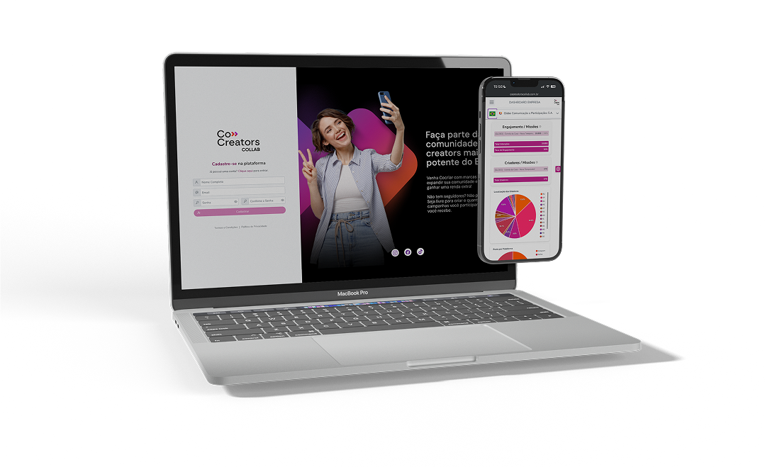 Solução ALL IN ONE que potencializa a cocriação com creators: lançamos e gerimos desafios, fazemos curadoria e aprovação, ativamos campanhas com comunidade ativa e oferecemos automação de performance e suporte completo aos criadores.